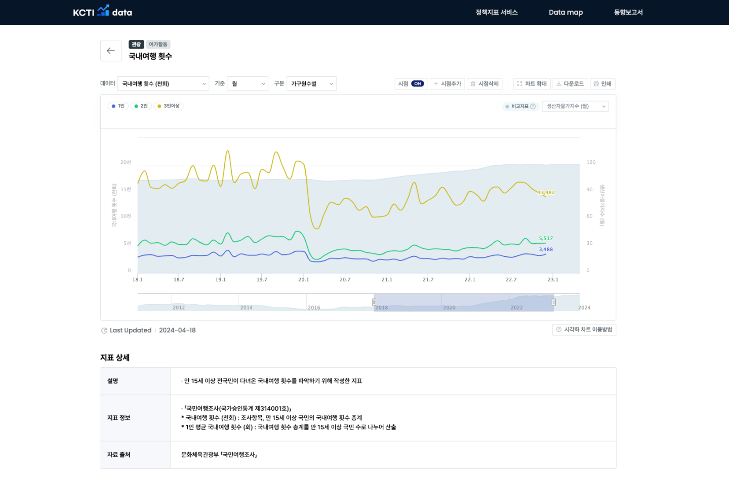 서비스 개편 이후 핵심 정책 지표 서비스를 활용하던 기존 사용자들에게 보다 넓은 범위의 정보로서 문화·관광·콘텐츠 관련 지표 현황, 동향보고서 등을 제공할 수 있게 되었습니다. 개별 정책지표 화면에서 보다 종합적인 데이터 인사이트를 도출할 수 있게 된 것, 서비스 내에서 직접 제공하는 지표 이외에도 관련 분야의 다양한 지표가 있다는 정보를 이용할 수 있다는 것에 큰 반응을 얻었습니다.